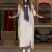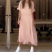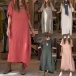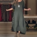 Robe décontractée en coton et lin avec col rond et fente boutonnée sur le côté
