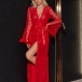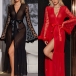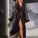 Comfy Heart Printed Gauze Spliced Long Sleeve Self-tie Robe