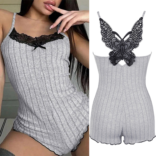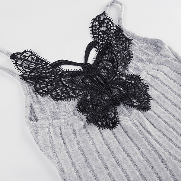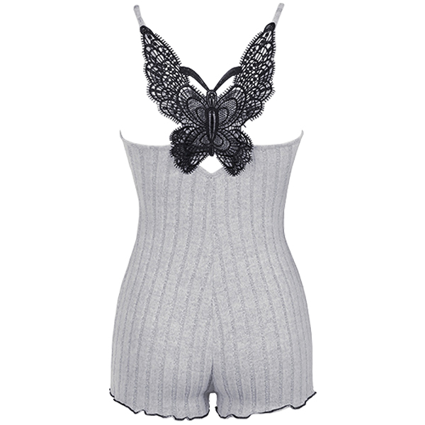 Comfy Lace Spliced Back Butterfly Ribbed Bodysuit