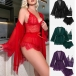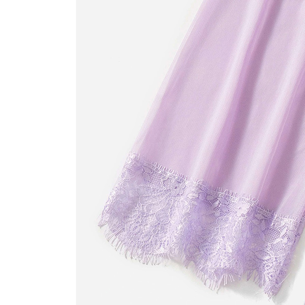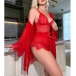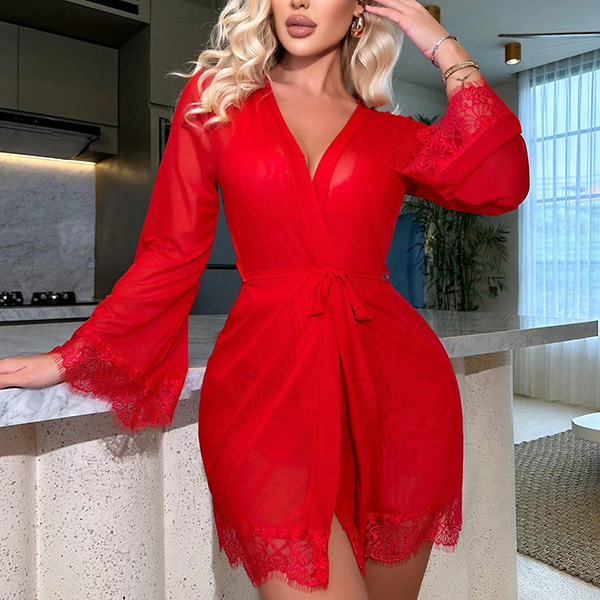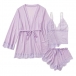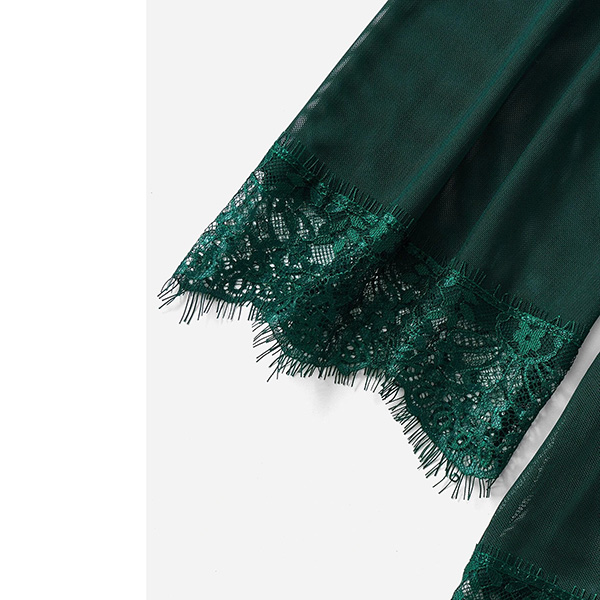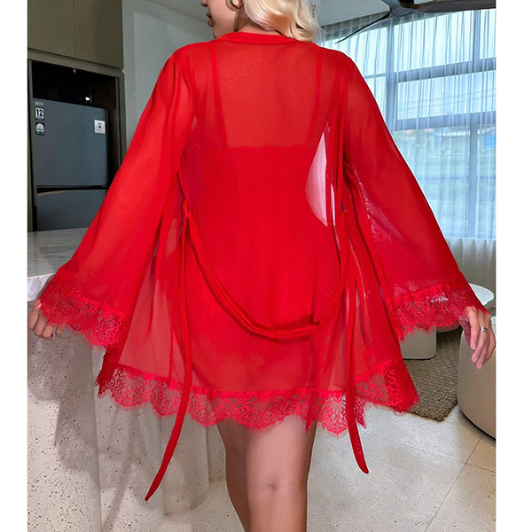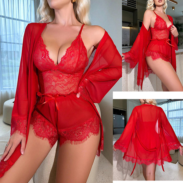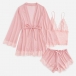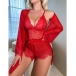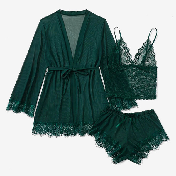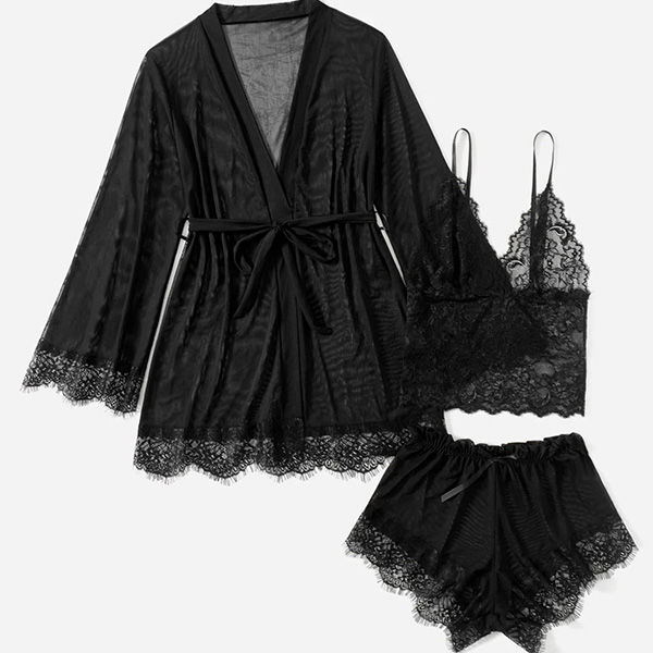 Comfy Lace Spliced Three-piece Nightwear Set Consist of Robe, Brassie and Shorts