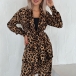 Comfy Leopard Printed Two-piece Loungewear Set Consist of Self-tie Shirt and Straight Cut Pants