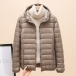 Comfy Lightweight Thin Down Jacket with Hoodie and Long Sleeve for Warmth
