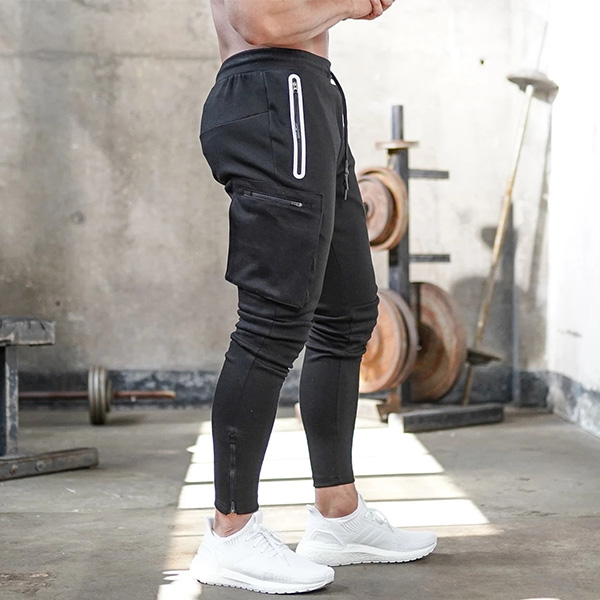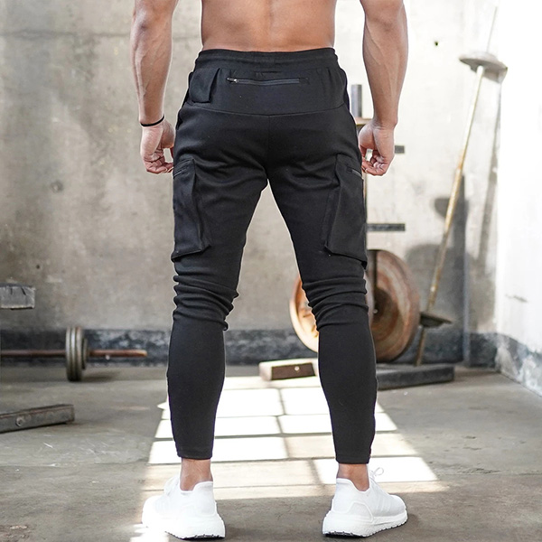 Comfy Men's Athletic Workout Cargo Pants with Side Pockets, Hidden Zippered Waist Pocket and Towel Loop