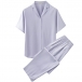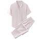 This lounge pajama set features an blouse with short sleeves and notch lapel. The bottoms have a comfort elastic waistband and straight-cut legs. Lounge like a movie star in this comfy women's bamboo pajama set. Multi-colors avaible.