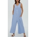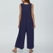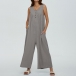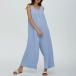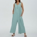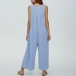 Comfy Solid Color Button Square Neck Sleeveless Loose Jumpsuit