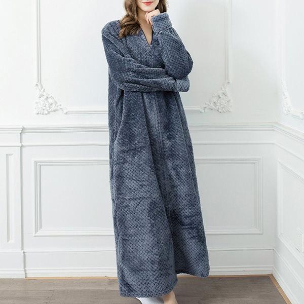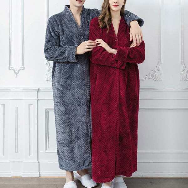 Comfy Solid Color Coral fleece Loose Longuewear Hoodied Nightgown for Couple