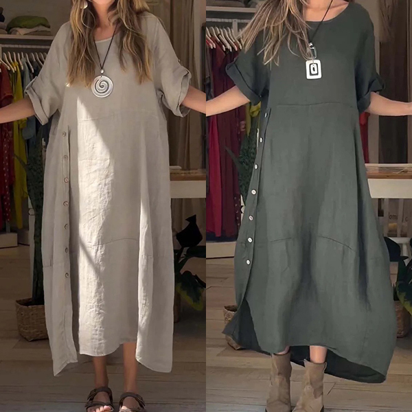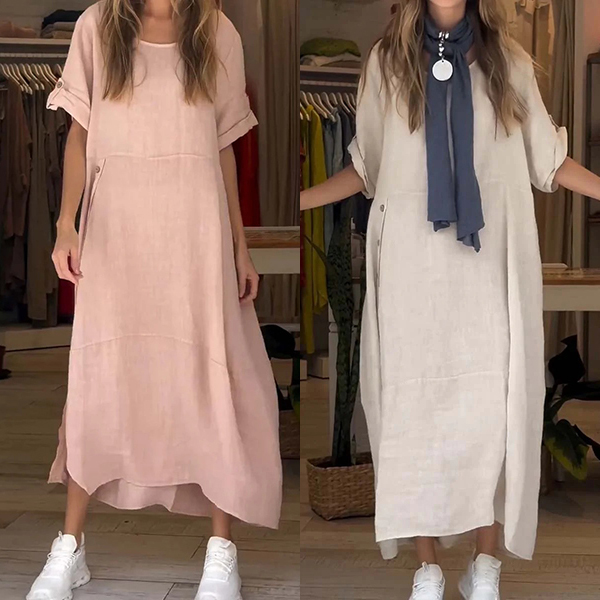 This Comfy Loose Cotton and Linen Dress is a versatile and easy-to-wear piece that combines comfort with style. The crew neck and short sleeves provide a classic and timeless look, making it a versatile option for various occasions. The loose fit of the dress offers a relaxed and comfortable silhouette, perfect for everyday wear or casual outings. Hope you likeit.