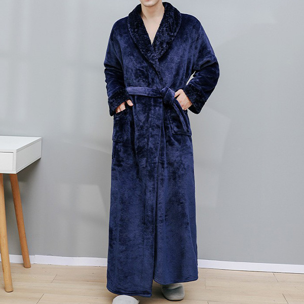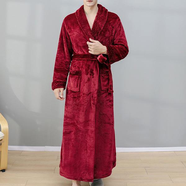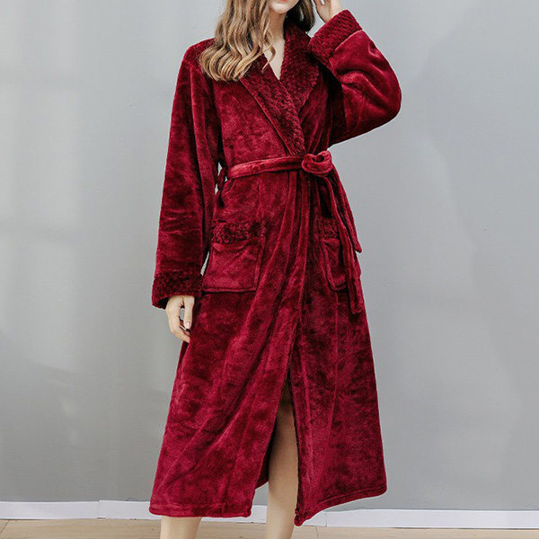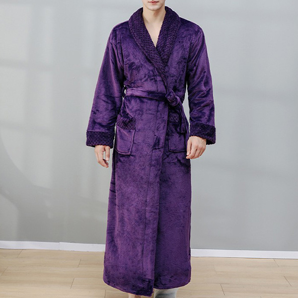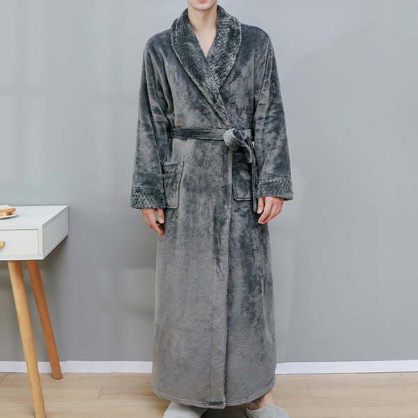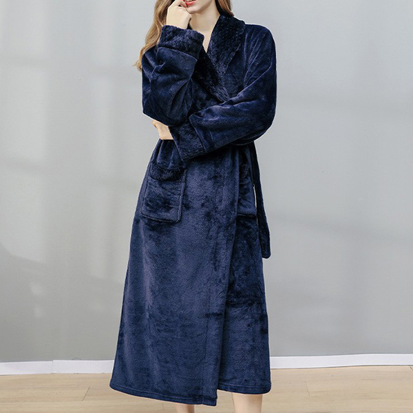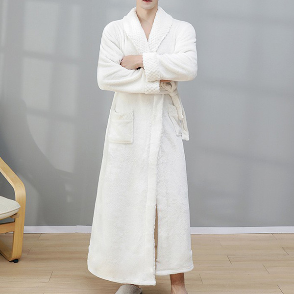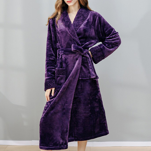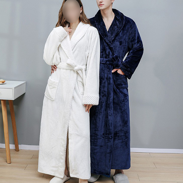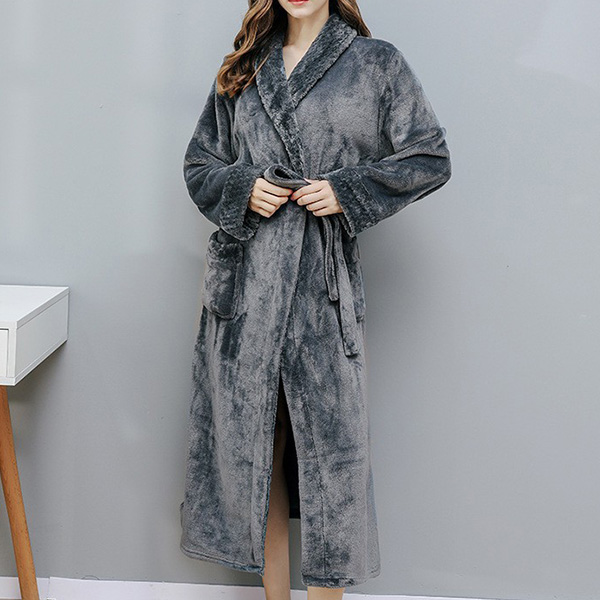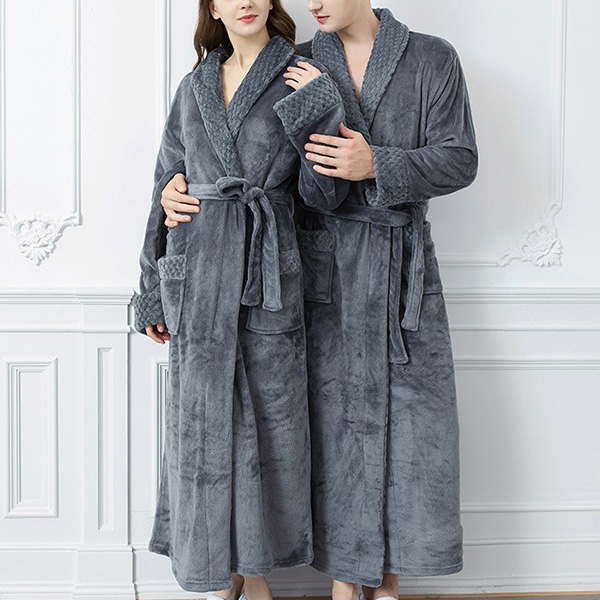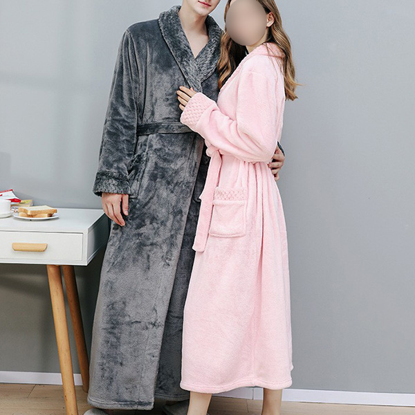 Comfy Solid Color Flannel Self-tie Loungewear Robe Nightgown for Couple