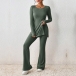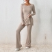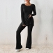 Comfy Solid Color Ribbed Two-piece Set Consist of Slit Shirt and Pants