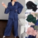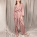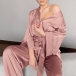 Comfy Solid Color Satin Loungewear Set Consist of Self-tie Shirt and Pants