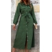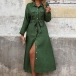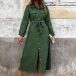 Comfy Solid Color Stand Collar Long Sleeve Patch Pockets Front Button Midi Shirt Dress