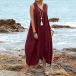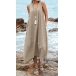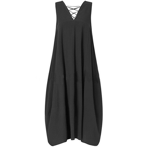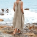 Comfy V-neck Sleeveless Back Lace-up Loose Cotton and Linen Beach Dress