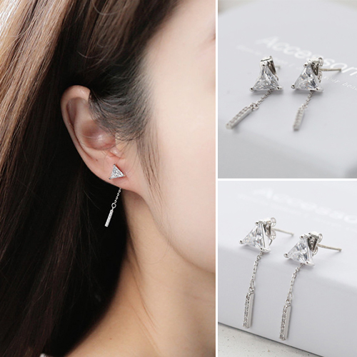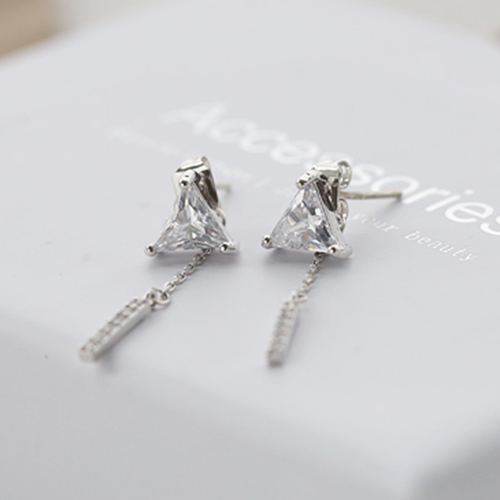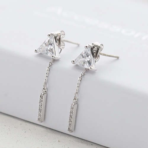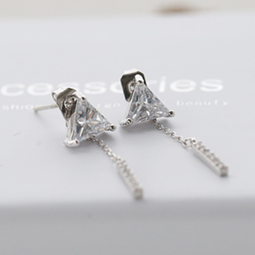 Elevate your femininity via this stud earrings. With crystal triangle tassel design,