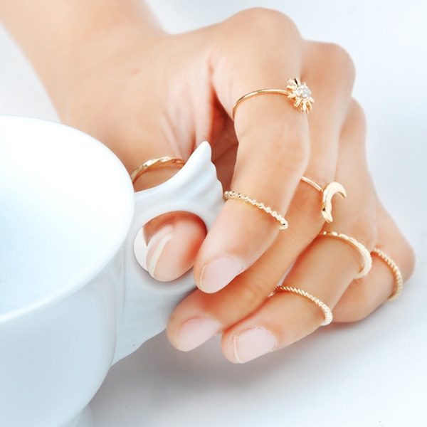 This delicate ring set 7 pcs/set is simplistic and stunning all at once. This ring set consists of 7 piece