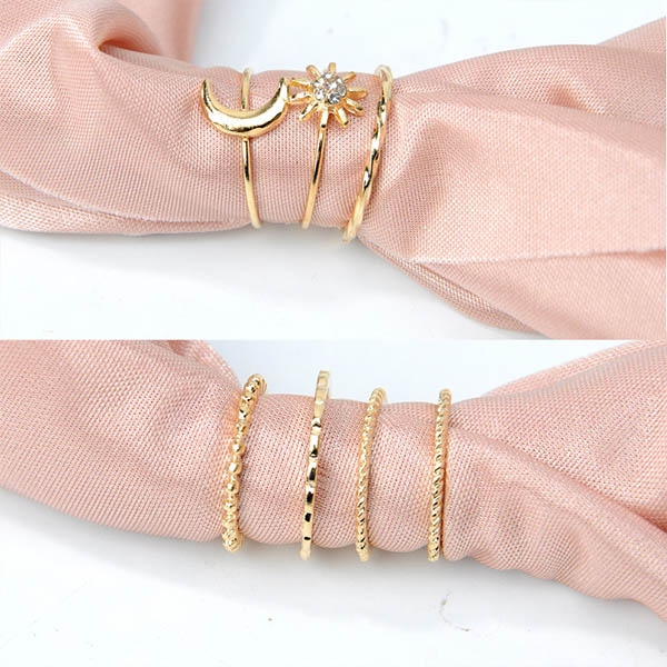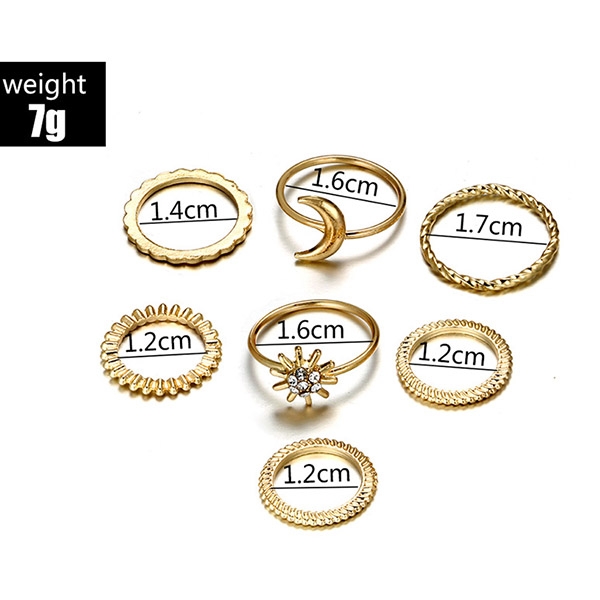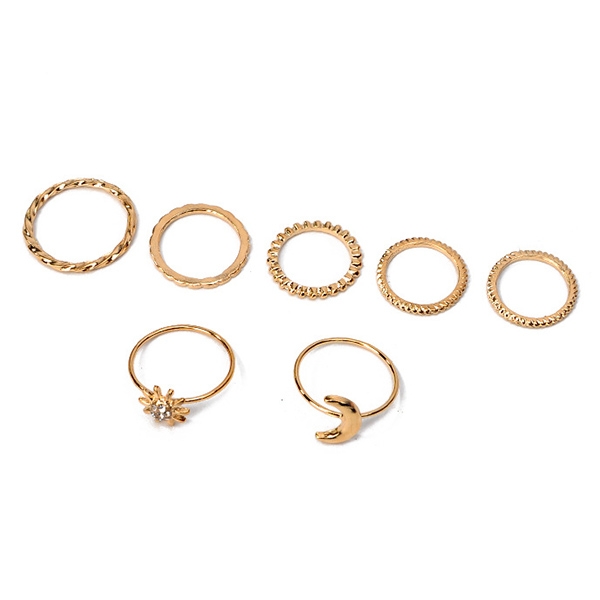 Concise Style Sun/Moon Shape Ring Set 7 pcs/Set