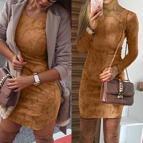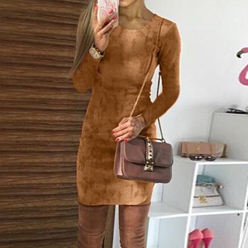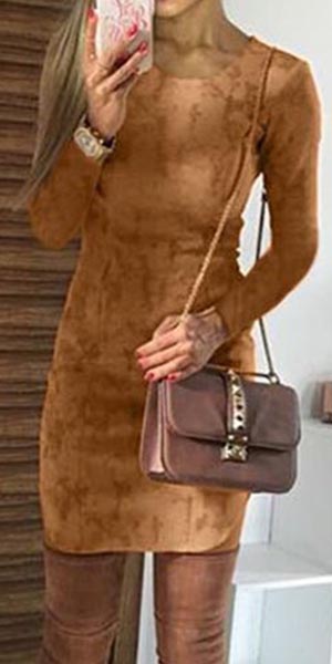 minimalist, equipped with round neck and long sleeve design, this dress creates your concise