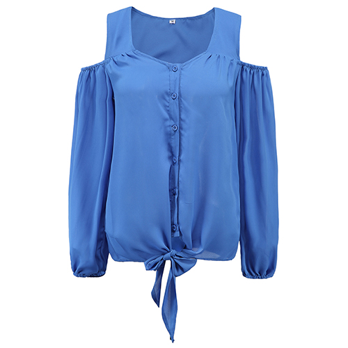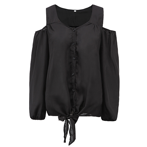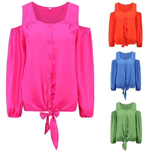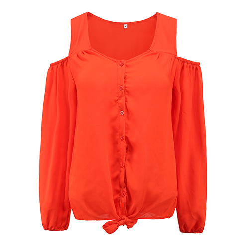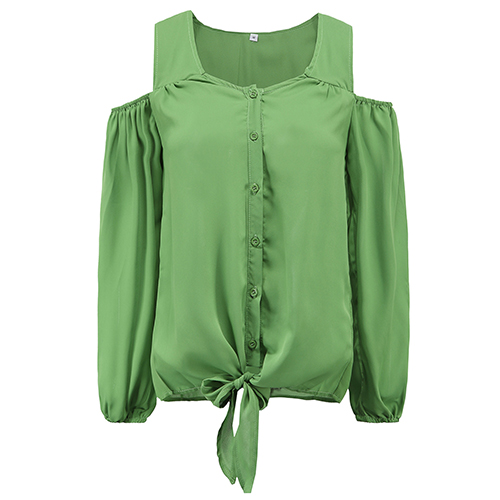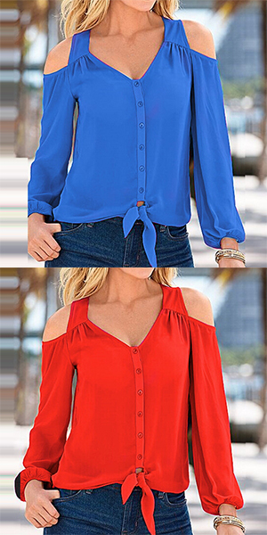 and chic. Featuring v-neck, cold shoulder and long sleeve design, this solid-coloured tops is your best