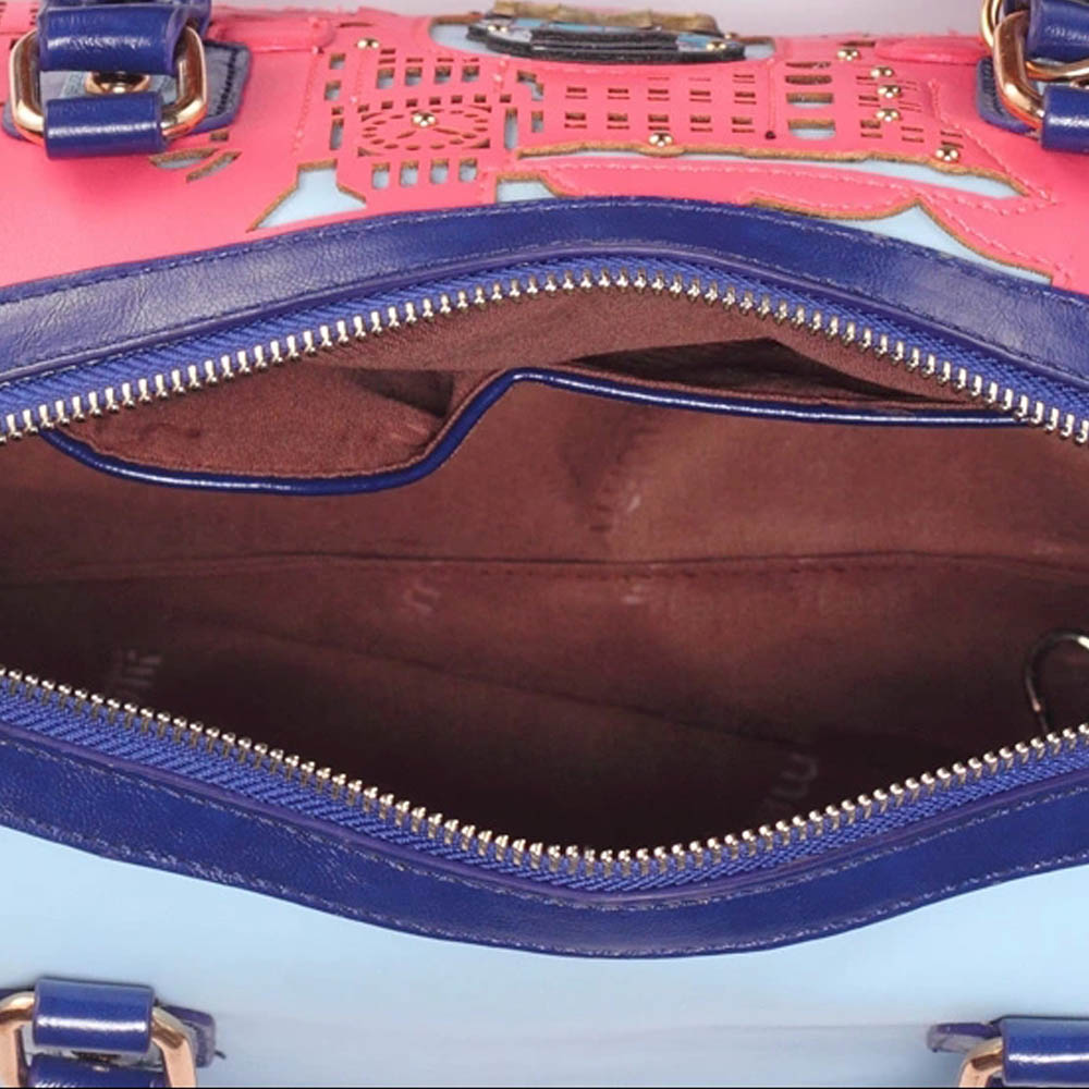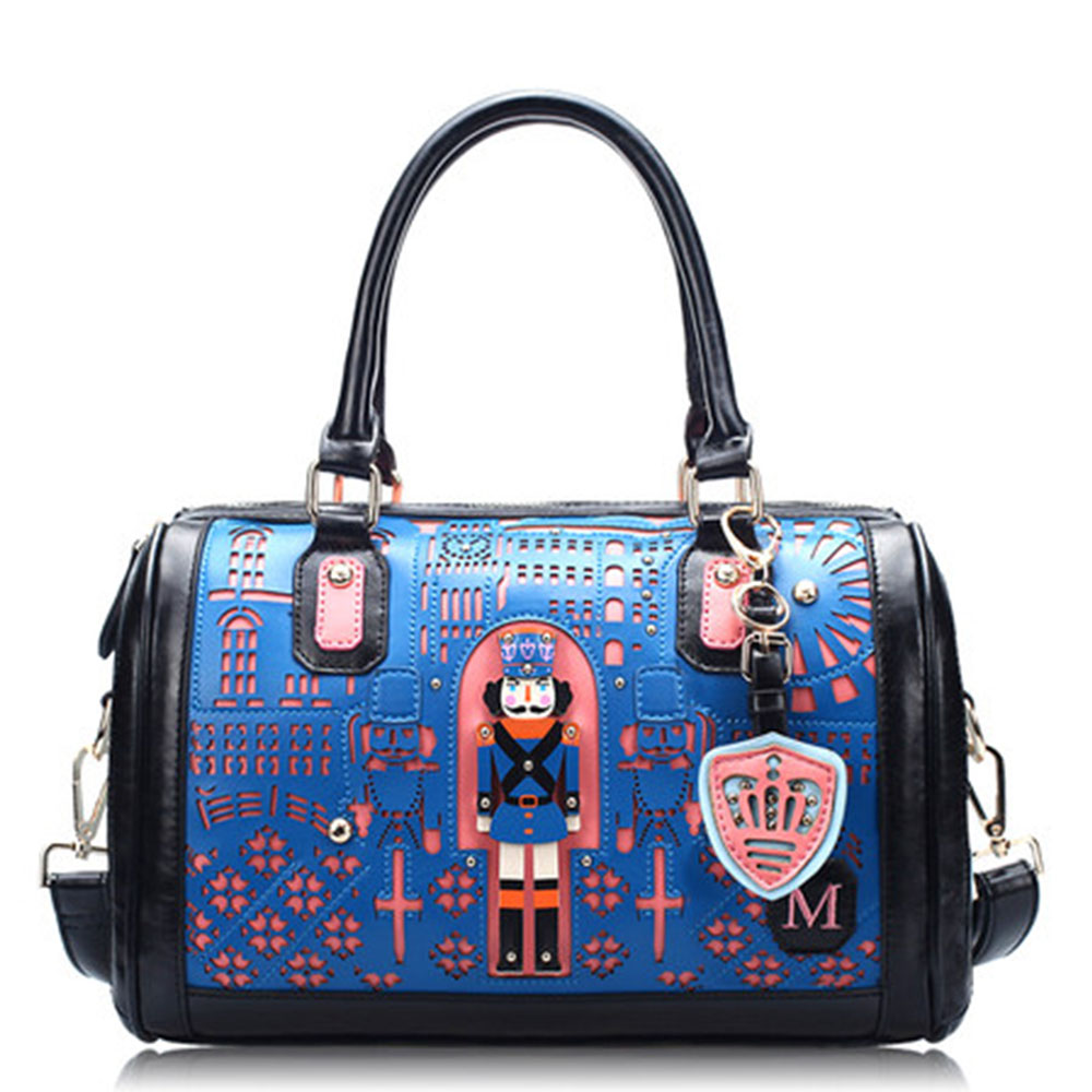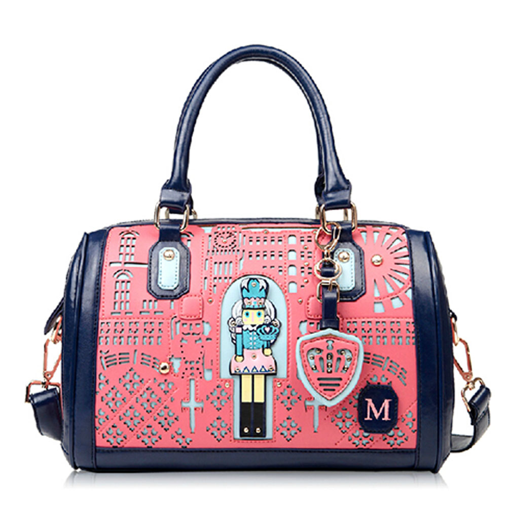 Let this handbag make you unique and accompany you every day. Features contrast color style,hollow out design,with a cartoon pattern. Comfortable handle,with a detachable and adjustable shoulder strap for different wearing style. Exquisite workmanship makes it impeccable.