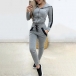 Contrast Color Long Sleeve Hooded Top + Pants Two-piece Set