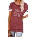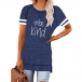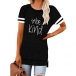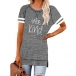 Contrast Color Short Sleeve Round Neck Slit Hem Letters Printed T-shirt