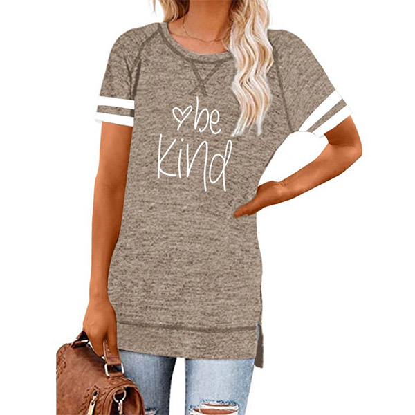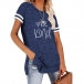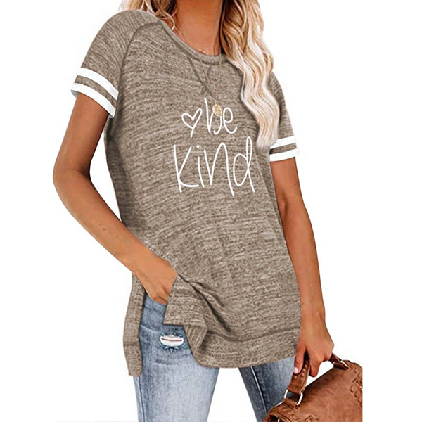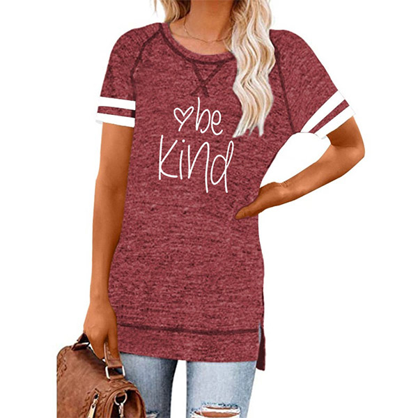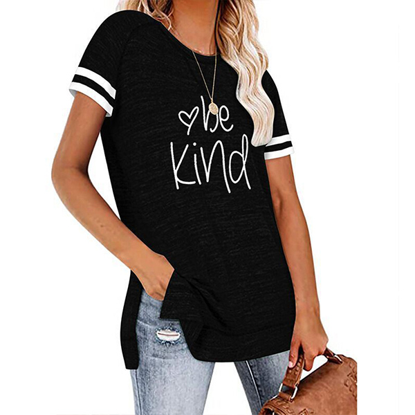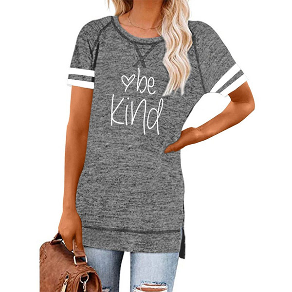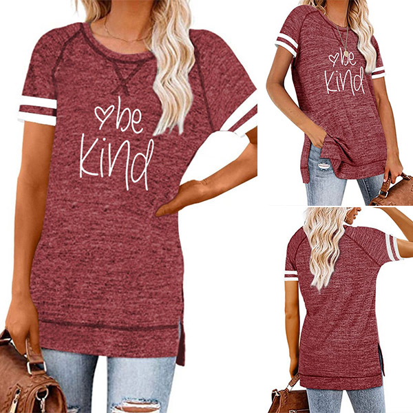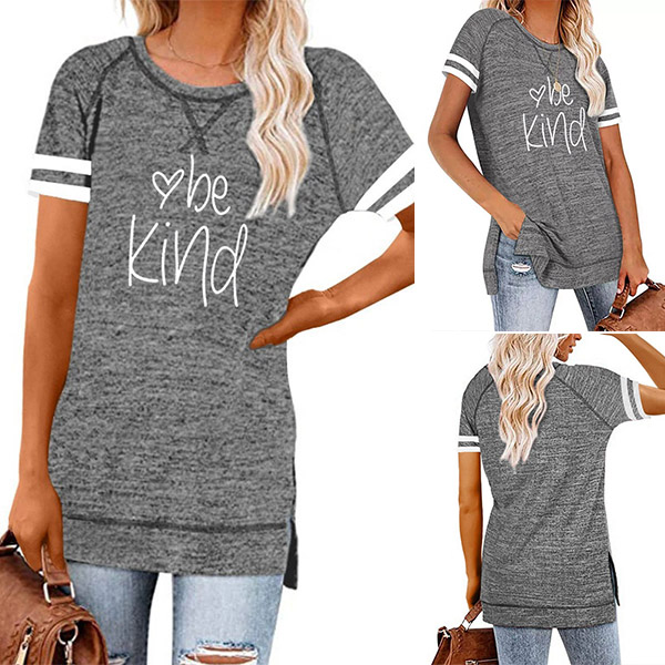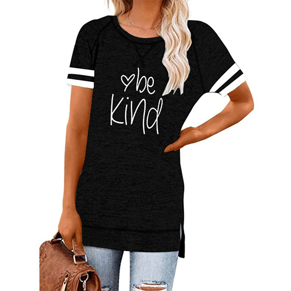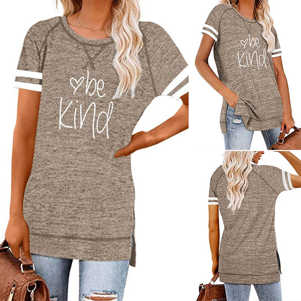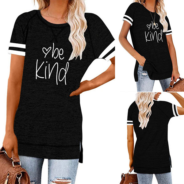 Except for the comfy,this t-shirt also can maintain your style and personality. The letters printed details,slit hem and contrast color short sleeve design enrich the design style,which can easily enhance its entire charm. And its super soft,breathable fabric can give you an all-day comfort. For your casual days,this t-shirt is just the thing you need.