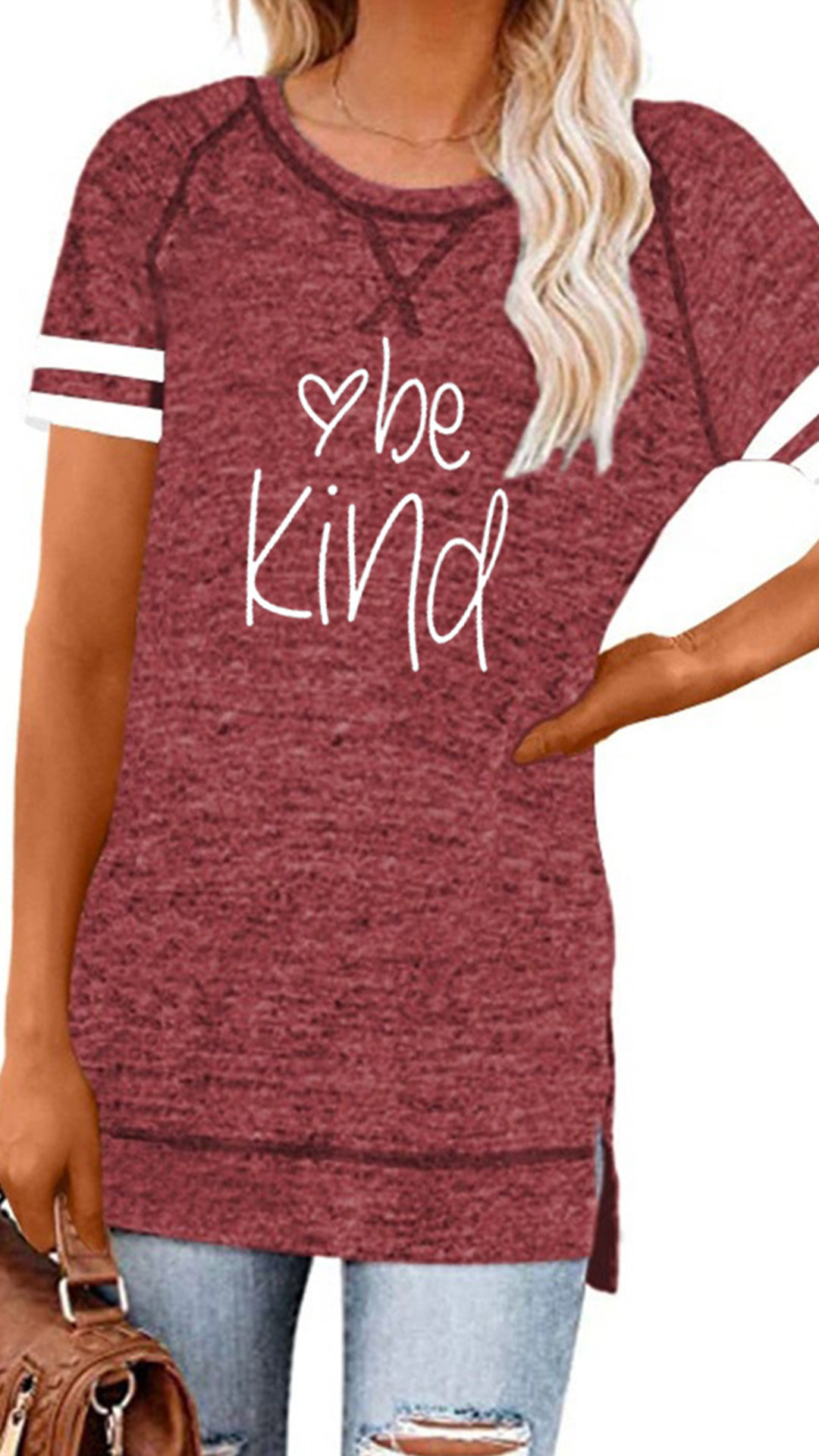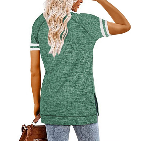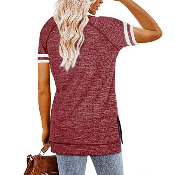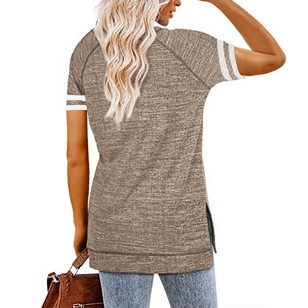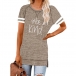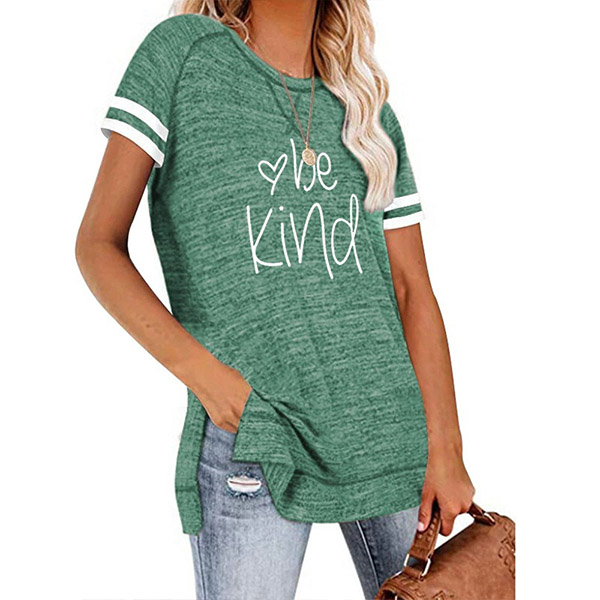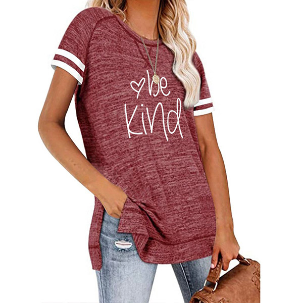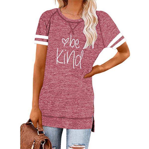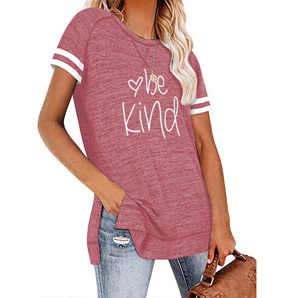 Except for the comfy,this t-shirt also can maintain your style and personality. The letters printed details,slit hem and contrast color short sleeve design enrich the design style,which can easily enhance its entire charm. And its super soft,breathable fabric can give you an all-day comfort. For your casual days,this t-shirt is just the thing you need.