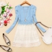Contrast Color Splicing Long Sleeve Crochet Mesh Skirt Bodycon Dress
