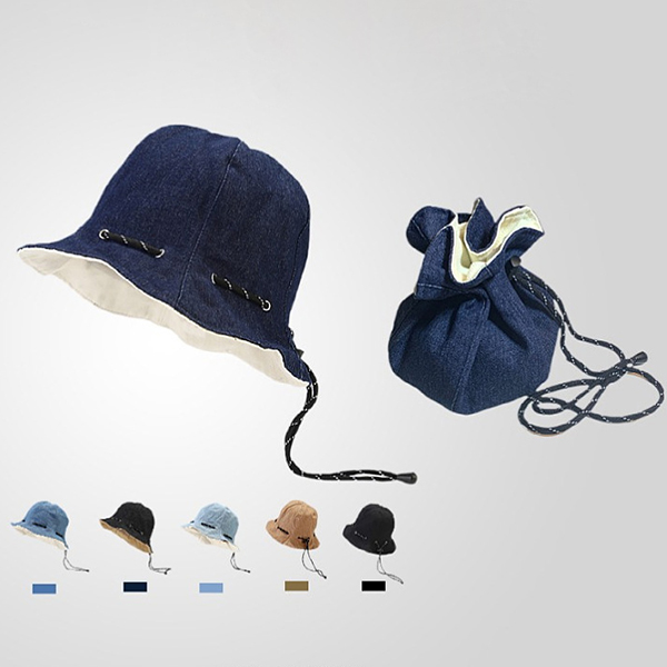 Convertible Bucket Hat with Drawstring- Drawstring Backpack