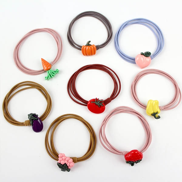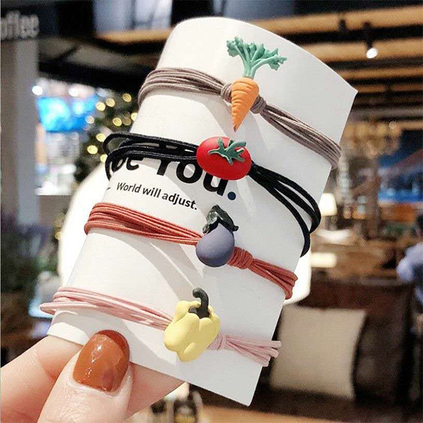 Cute Cartoon Fruit Pendant Elastic Hair Rope -5 pcs/Set