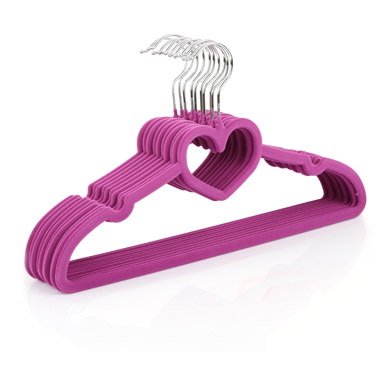 ELEGANTLY finished in luxuriously SOFT, PINK FLOCKED VELVET that DOESN'T FADEHIGH QUALITY, LUXURY VELVET coat hangers manufactured from TOUGH, FLEXIBLE ABS plastic in packs of 10NON-SLIP velvet with HANDY NOTCHES for SKIRTS, TOPS and THIN shoulder strapsSUPER-SLIM, closet-friendly 3/16" profile that ADDS HANGING SPACE to your closetFIRMLY MOLDED chrome-plated steel hook, STRONG & DURABLE, GENTLE on all fabricsUNIQUE BIRTHDAY, ANNIVERSARY OR MOTHER'S DAY GIFT IDEA FOR THE SPECIAL LADY IN YOUR LIFE