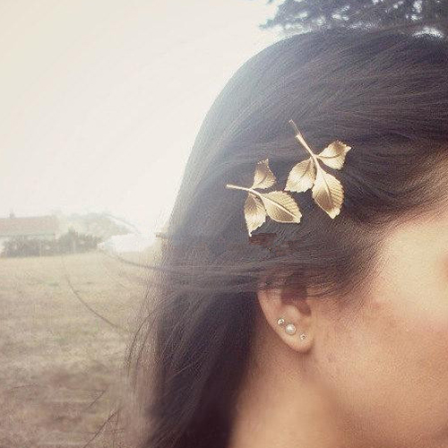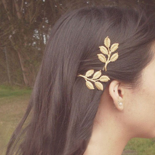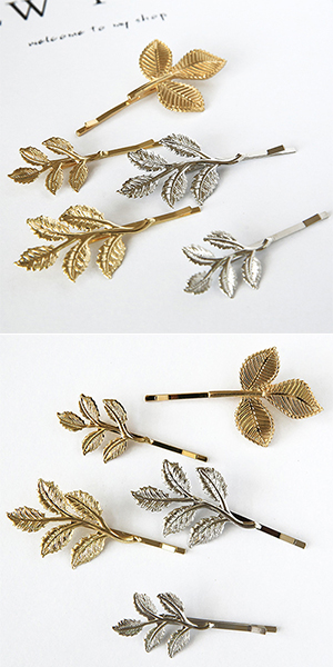 The hairpin features gold-tone leaf shaped design, delicate and stylish. The leaf patterns bring us to