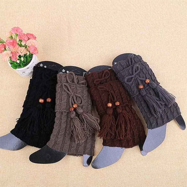 Fashion Solid Color Tassel Knit Leg Warmer