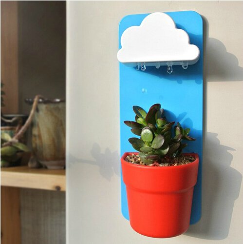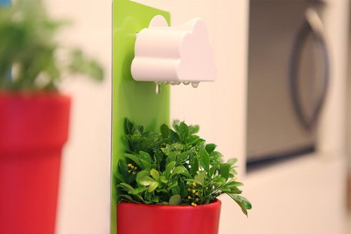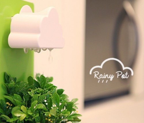 It is simple to use Rainy Pot. Just pour some water into the opening on the top of the cloud form, and 'raindrops' will fall through small holes in its base and onto the plant below. The gentle effect of raindrops is less stressful for the plant than having a torrent of water poured on it from a cup, for example. Indoor plants tend to have weak and shallow roots. When too much water is provided, the plants can become stressed and the roots can decompose. Furthermore, the plant does not need to be taken outside for watering as is the case with large watering cans (which can make a mess via spillage). There is also an emotional benefit. Rainy Pot mimics the natural weather system, which can be soothing to grownups and educational for children. Rainy Pot can also contribute to one's interior decoration scheme.