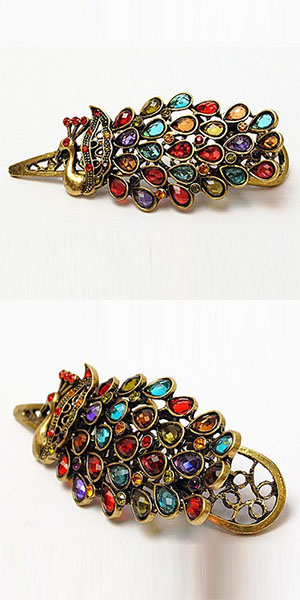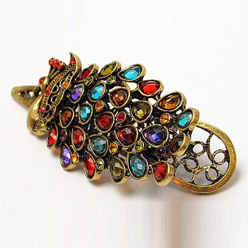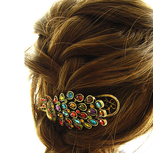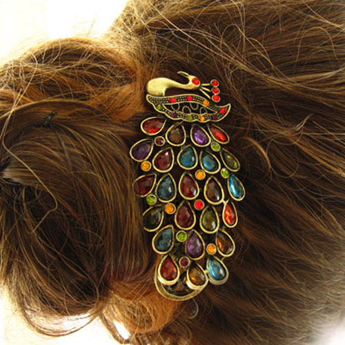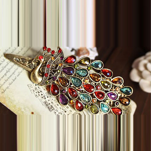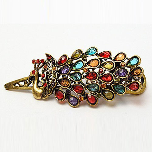 Retro Style Colorful Crystal Peacock-shaped Hairpin