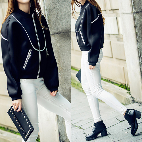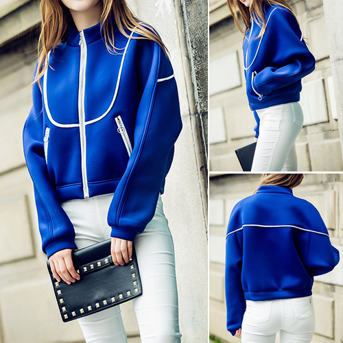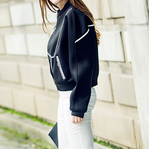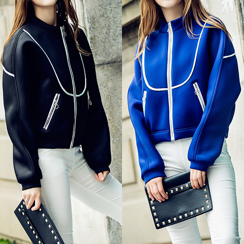long sleeve and 2 side pockets design, its chic contrast color style let this piece look more cool