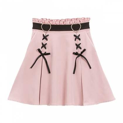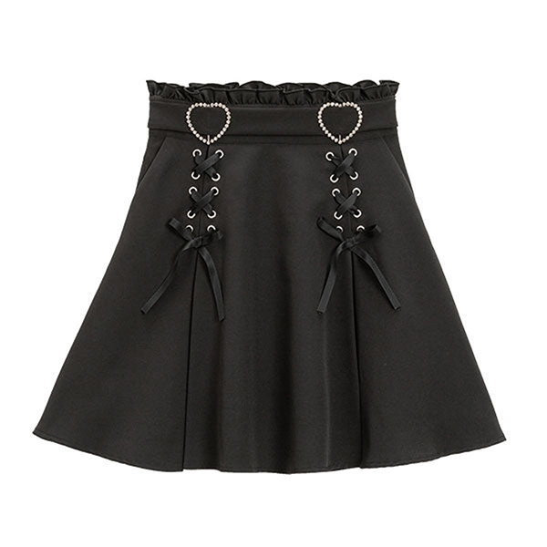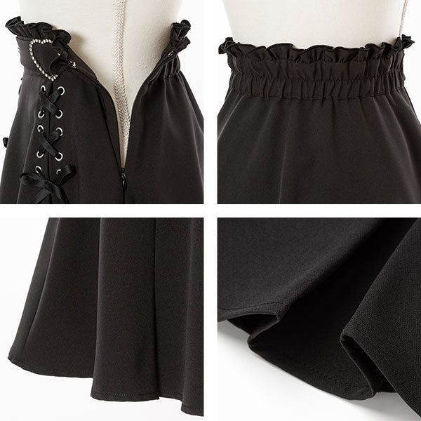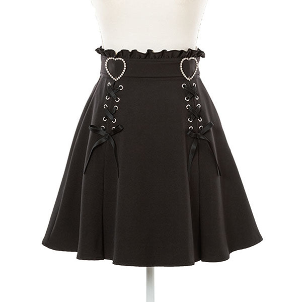Coquette Goth Mini Skirt - Ruffled Elastic Waist with Corset Lacing & Heart Rings