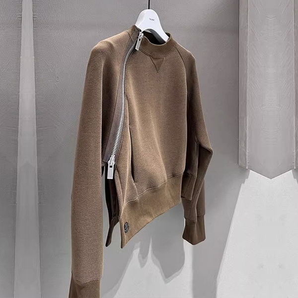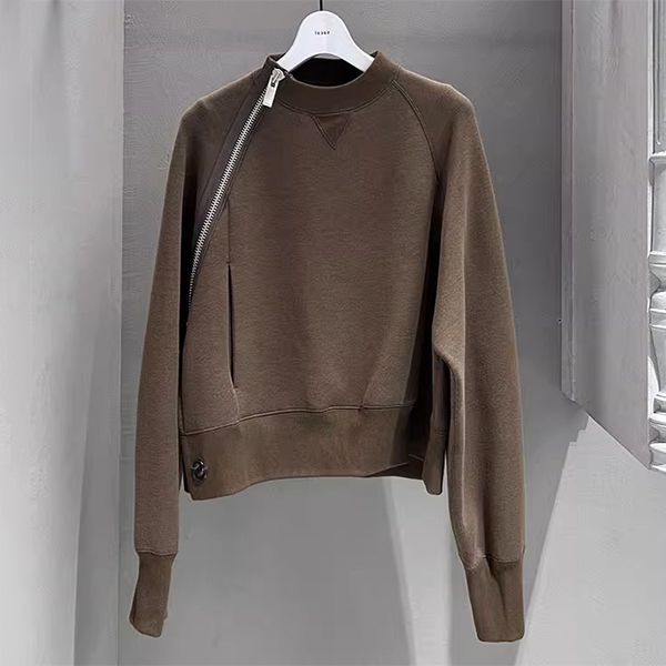 Cozy Warm Brown Sweatshirt with Diagonal Zipper