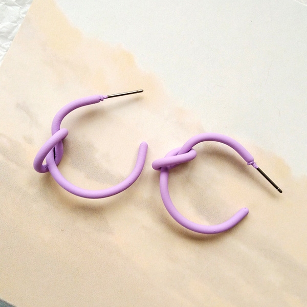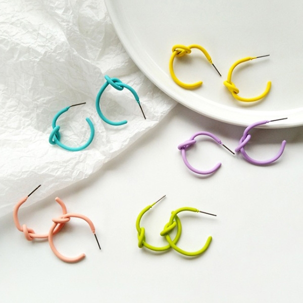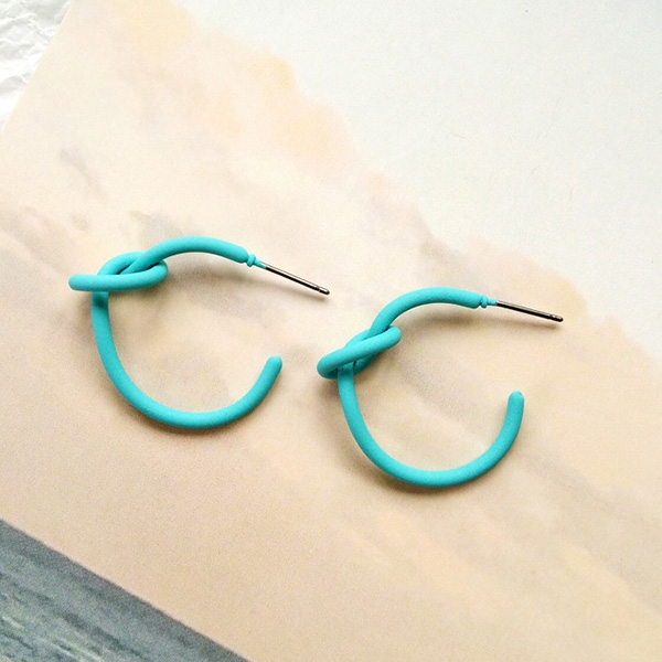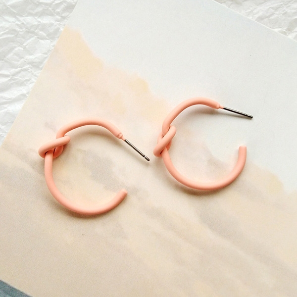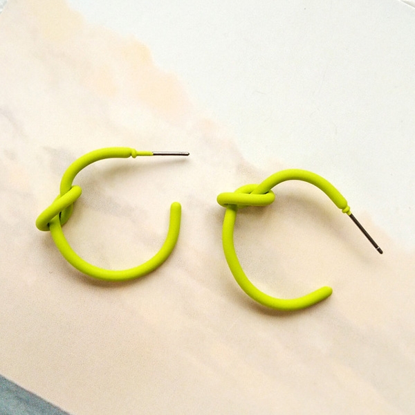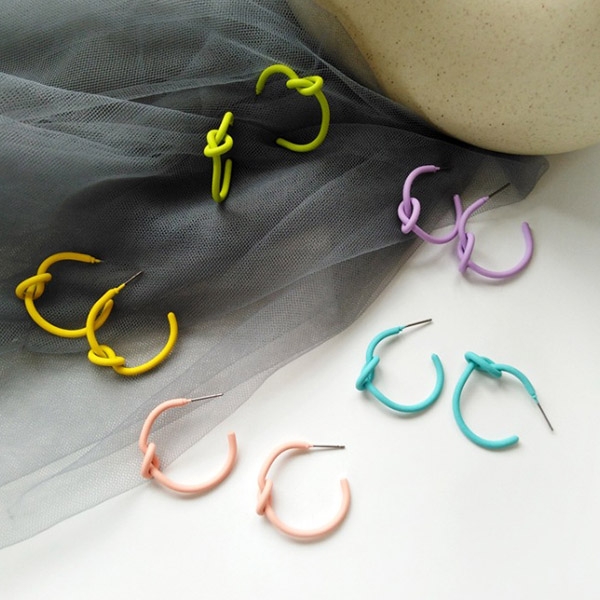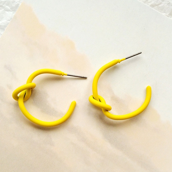 on this pair of stud earrings. C-shape design,with knotted design,chic yet stylish. Bright color