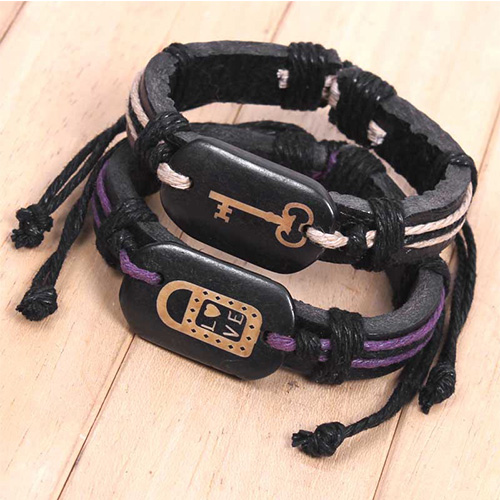 Creative Style Lock and Key PU Leather Couple Bracelet