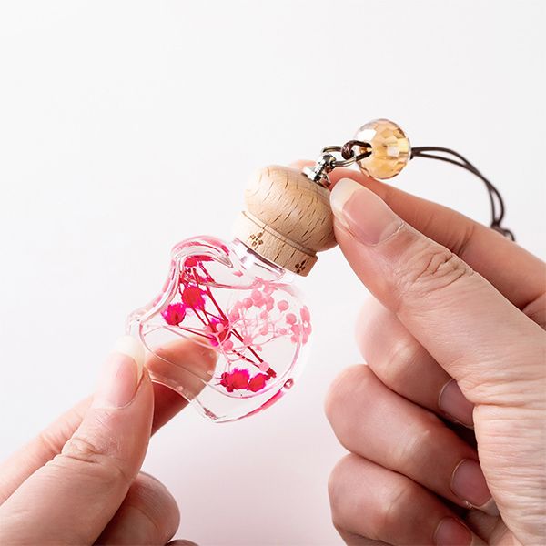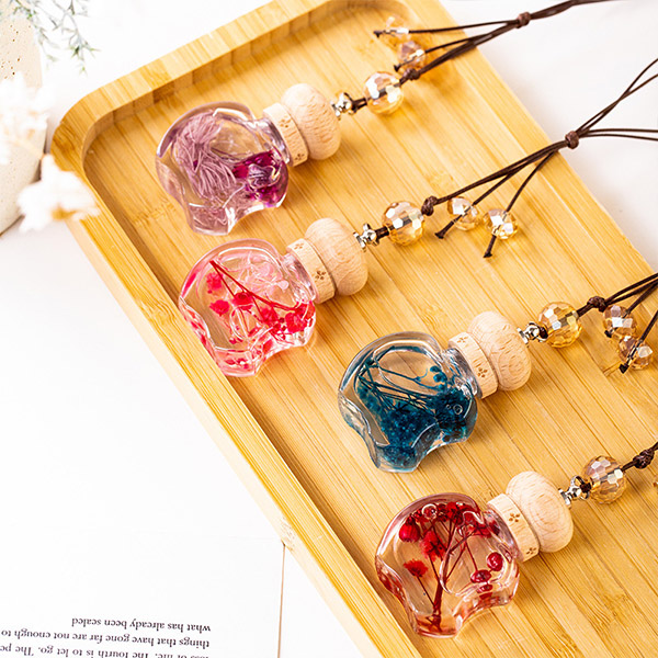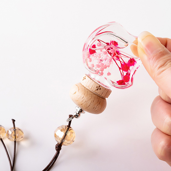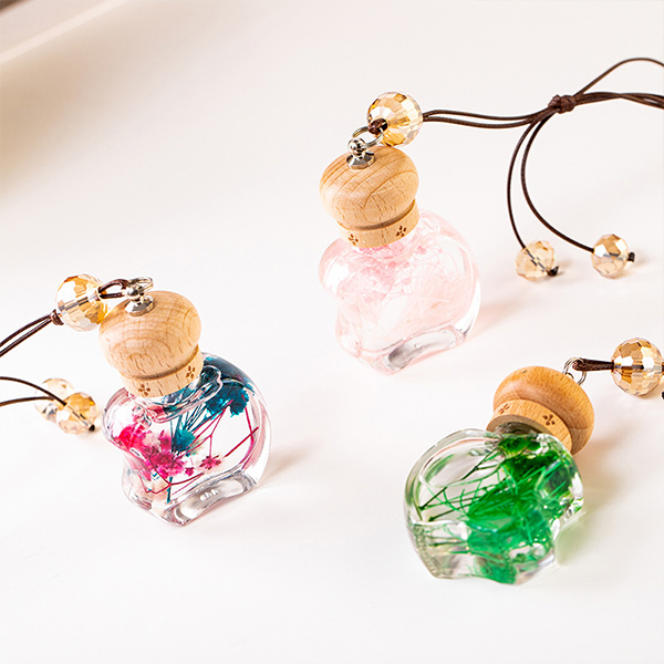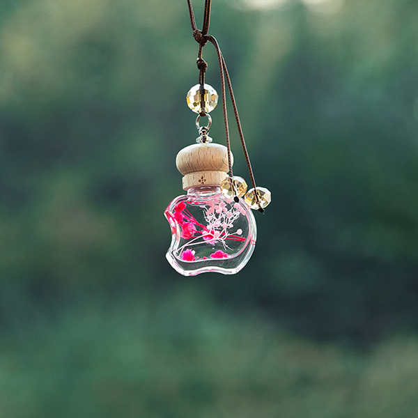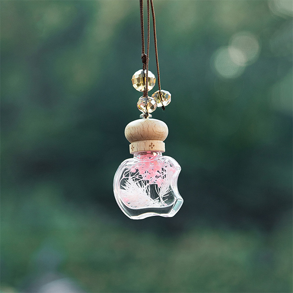 These empty glass bottles are perfect for storing perfume, essential oils, herbs,fragrance, or others. The preserved flower design inside the bottle makes it look so romantic and charming. Designed with a string, the bottle can also be hanged in car or home or office for fresh the air or just for decoration.