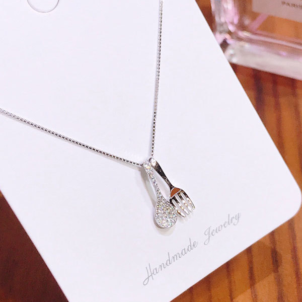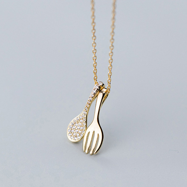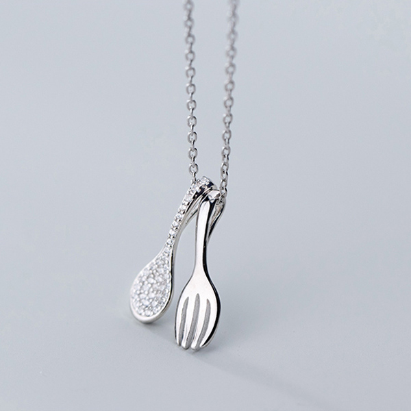 Creative Style Rhinestone Inlaid Fork & Spoon Pendant Necklace