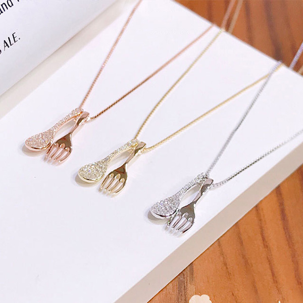You have no need to wonder why you can win more eyes when you wear this creative style necklace. It is decorated with fork and spoon pendant,inlaid with rhinestone details,which make it look so chic and attractive. Your entire charm can have an instant boost by wearing this necklace.