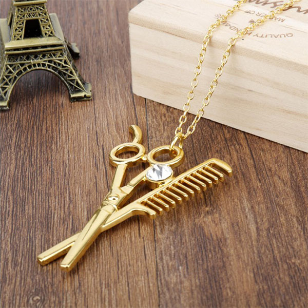 This necklace that is full of chic and unique vibes is worth to arouse your attention. It is decorated with the comb and scissors pendant,this necklace can help you arouse more attention.