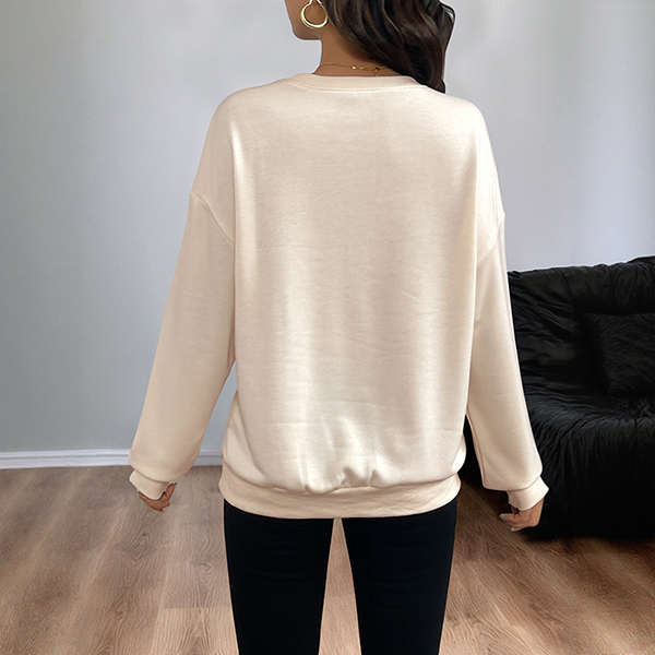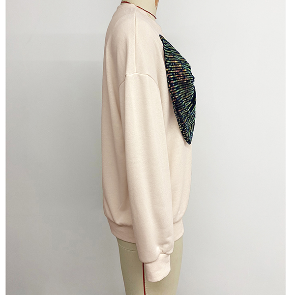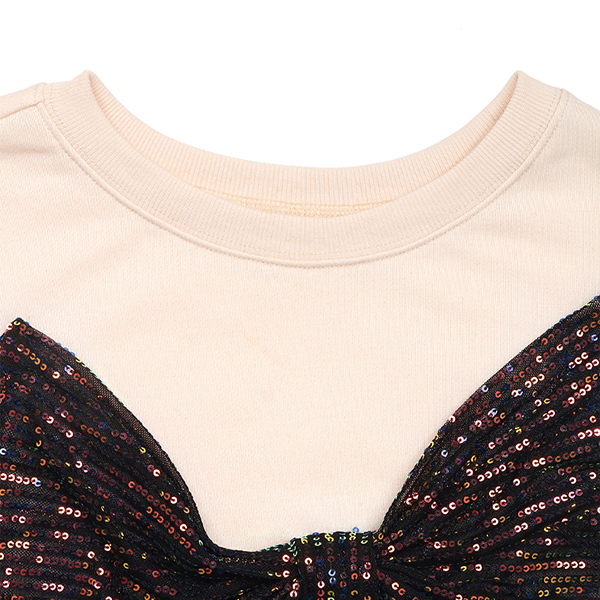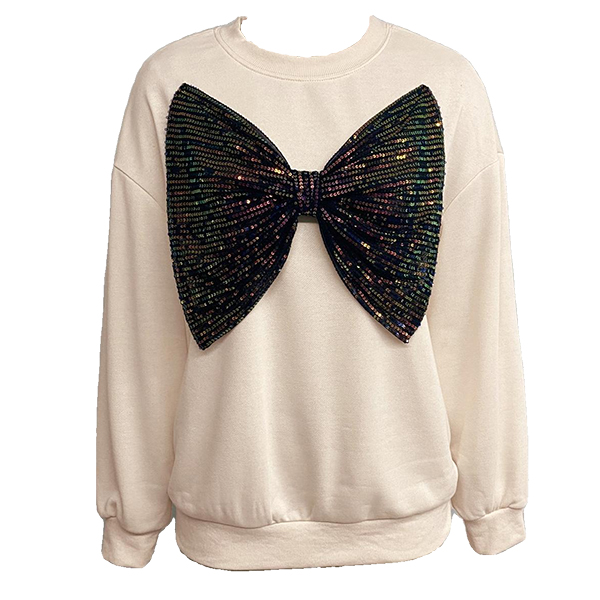 Fashion Crew Neck Long Sleeve Shirt with Sequined Bowknot