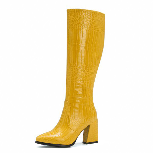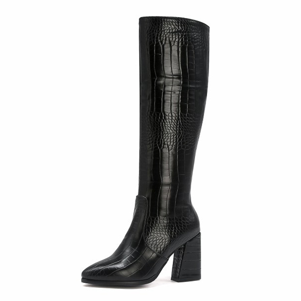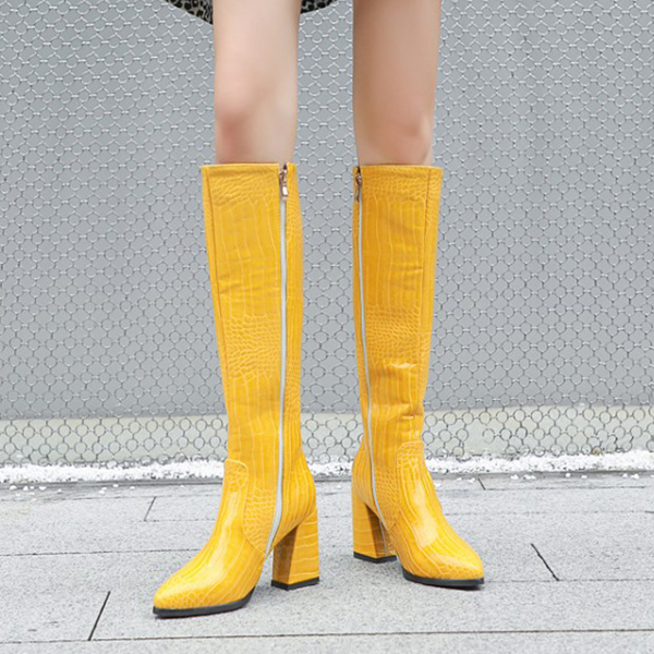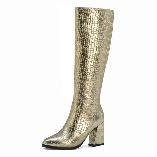 Crocodile-Patterned High Heel Boots for Women