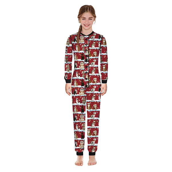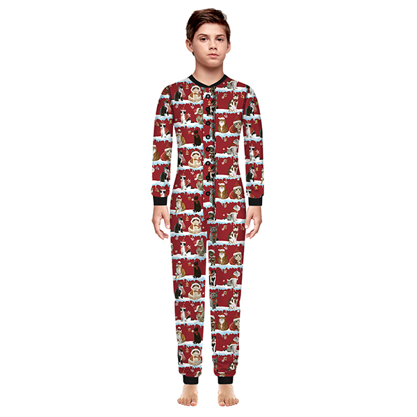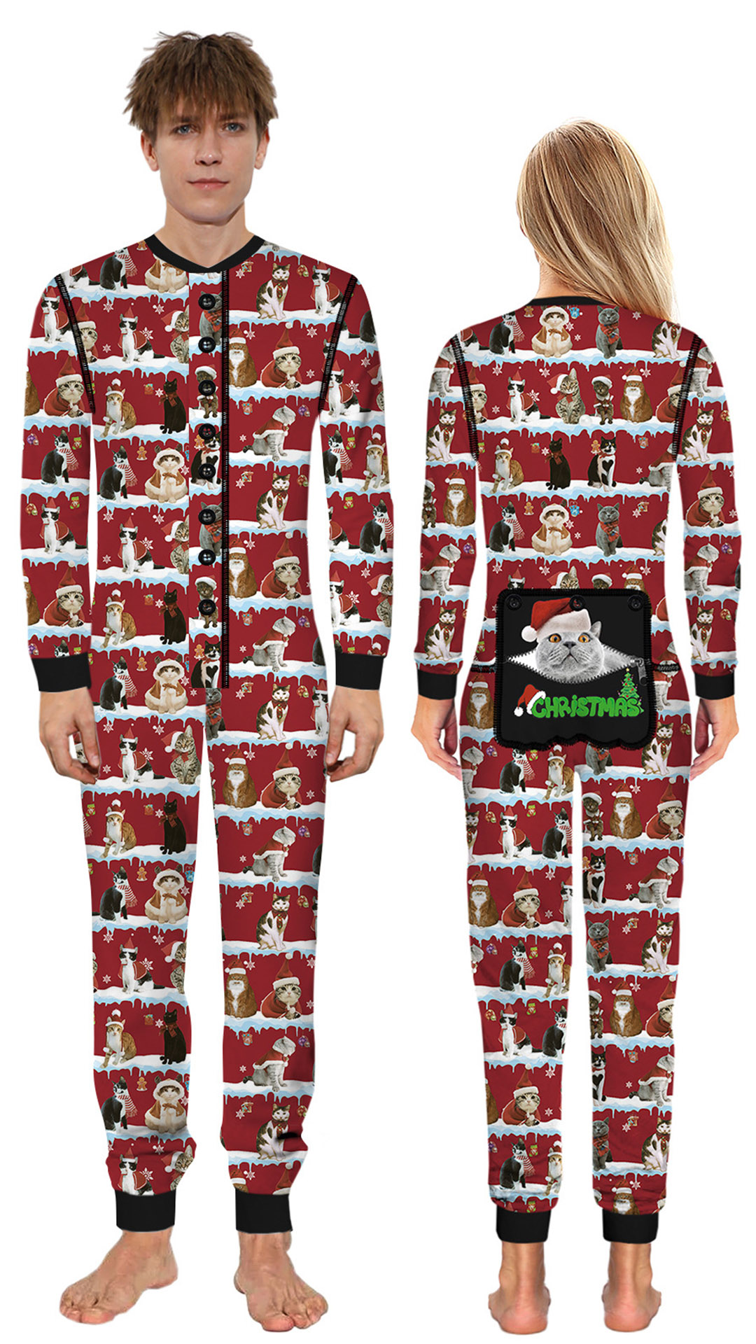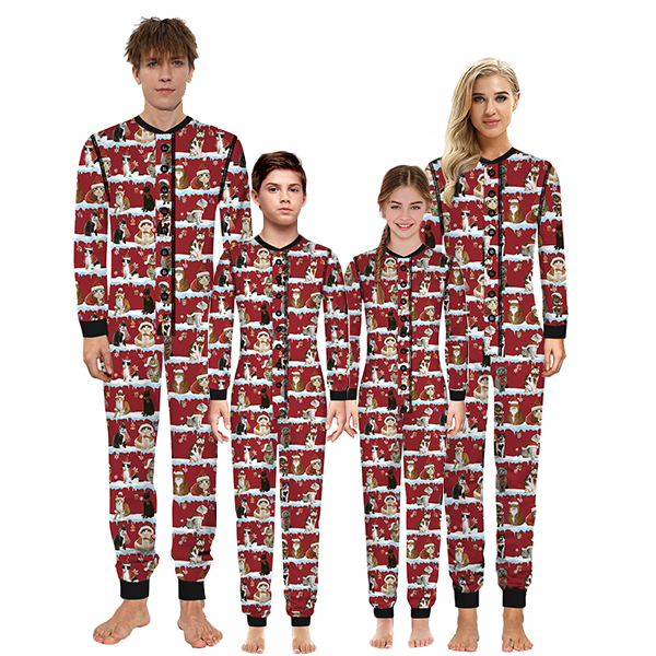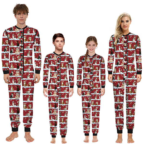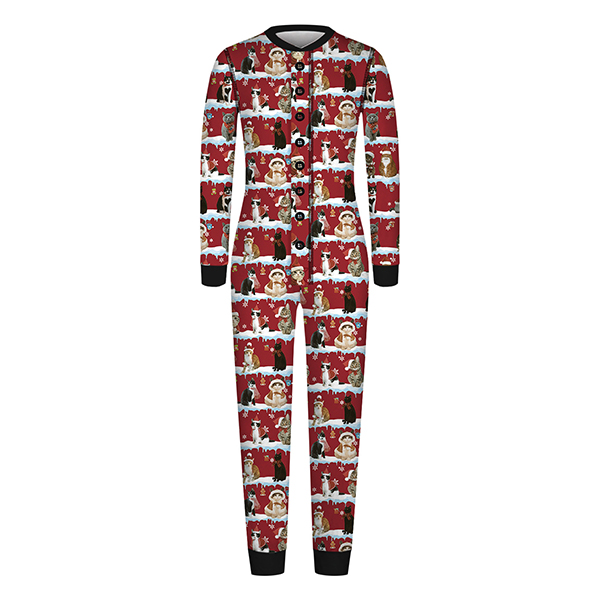 Your can enjoy your home time with your families with this parent-child jumpsuit. The cartoon cat printed pattern design makes it look so lively,eye-catching and playful. The front-button design makes it easy to wear and off,while its soft,breathable fabric will ensure you an utmost comfort. It is perfect fit for your home time and sleeping time.