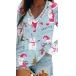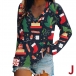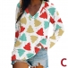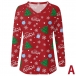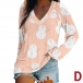 Cute Cartoon Christmas Printed Long Sleeve V-neck Loose T-shirt