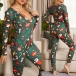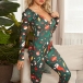Cute Cartoon Christmas Printed Long Sleeve V-neck Slim Fit Jumpsuit