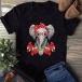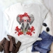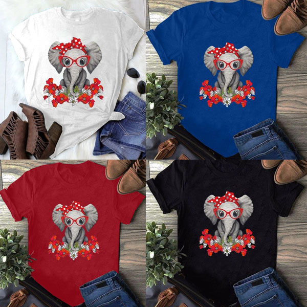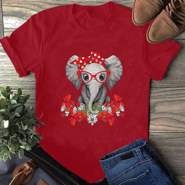 Cute Cartoon Elephant Pattern Short Sleeve Round Neck Loose T-shirt