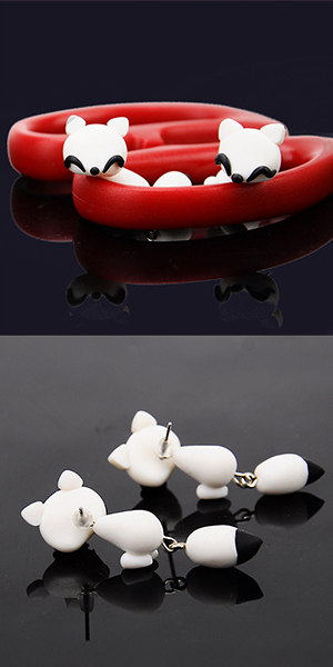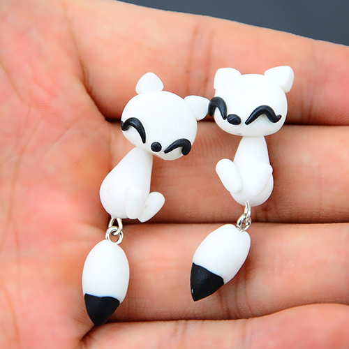 This pair earrings looks so cute and vivid. Little fox shaped design,crafted from polymer